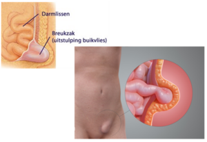 Doorheen de opening kan buikvet of zelfs een darm glijden.