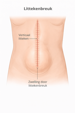 Nadat u onder algemene narcose gebracht bent, wordt uw litteken hernomen.